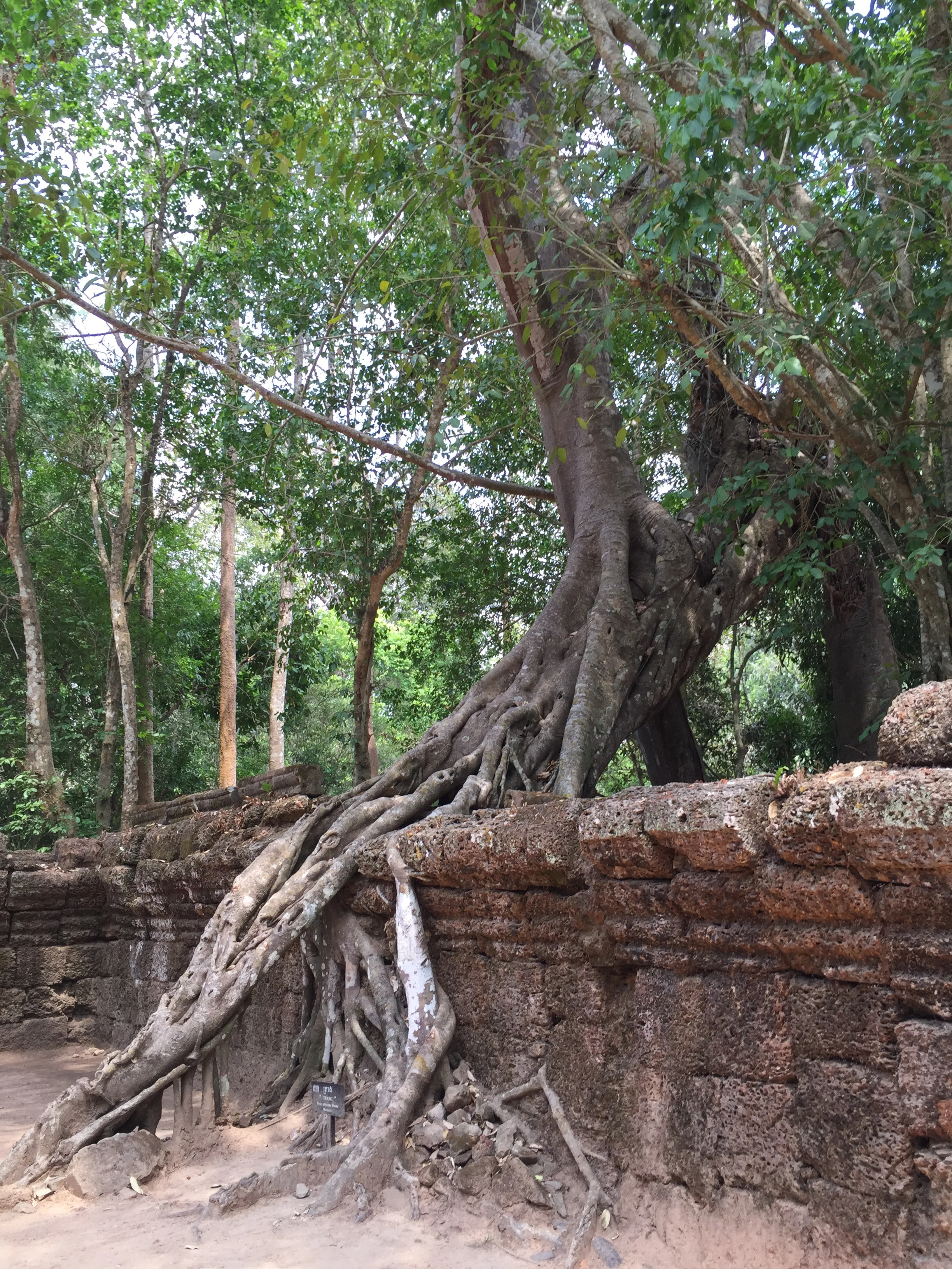 This is one of the most famous temples partly due to being featured in the movie Lara Croft Tomb Raider. We only recently saw this movie in Kampot. It is easy to see why it is a favorite site. It is also difficult to imagine how centuries passed while these trees grew and spread their roots throughout the temple and its surrounding walls.